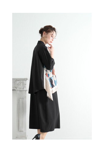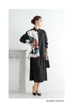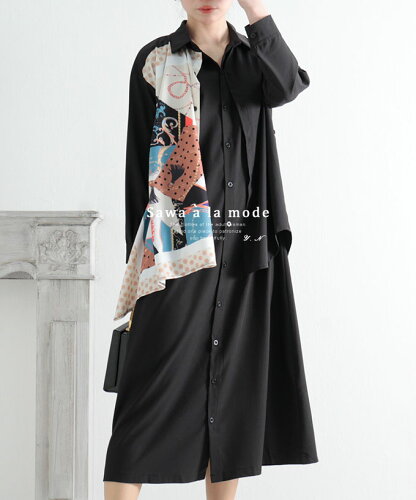 アートなシャツが重なるアシンメトリーワンピース レディース ファッション ワンピース チュニック シャツ 黒 ブラック 大人可愛い 40代 レディースファッション 50代女性 ファッション 60代 ミセスファッション サワアラモード sawa a la mode otona