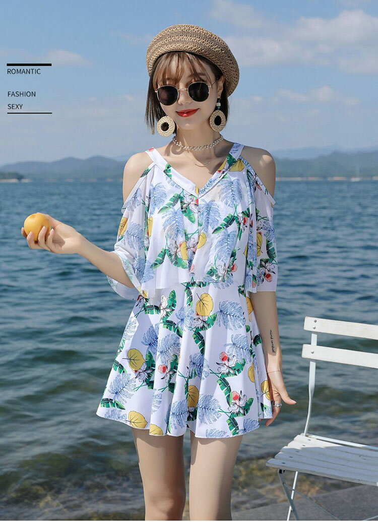水着 レディース 体型カバー セパレート 胸パット付き 水着 高校生 ワンピース アンダーパンツ 露出控えめ 総柄 ママ水着 長袖 サロペット 20代 30代 40代 快適 可愛い uvカット ショートパンツ Vネック 女性 バスト 盛れる 脚 二の腕 カバーアップ